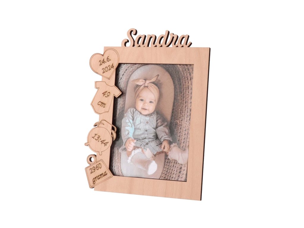 Drveni okvir za fotografije s imenom za rođenje djeteta 13 x 18 cm