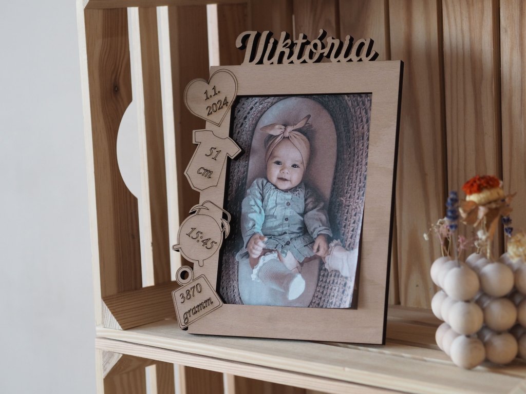 Sačuvajte uspomene na jedan od najsretnijih trenutaka u svom životu i nabavite elegantan okvir za fotografije s ugraviranim imenom djeteta i drugim detaljima.
