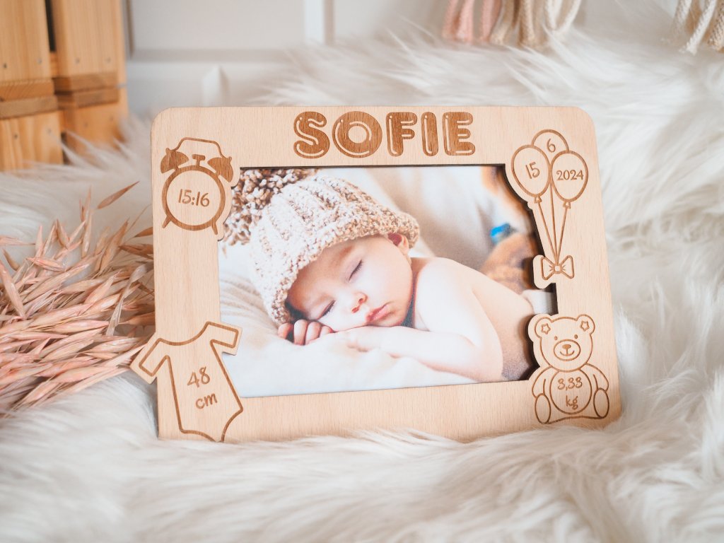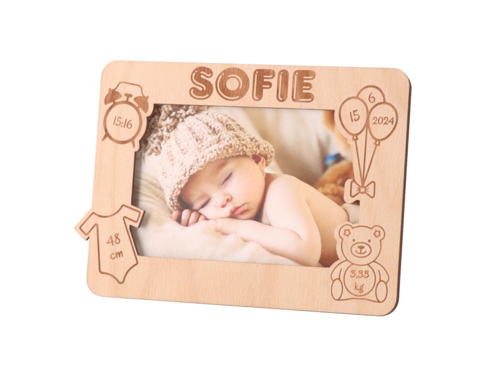 Sačuvajte uspomene na jedan od najsretnijih trenutaka u svom životu i nabavite elegantan okvir za fotografije s ugraviranim imenom djeteta i drugim detaljima.