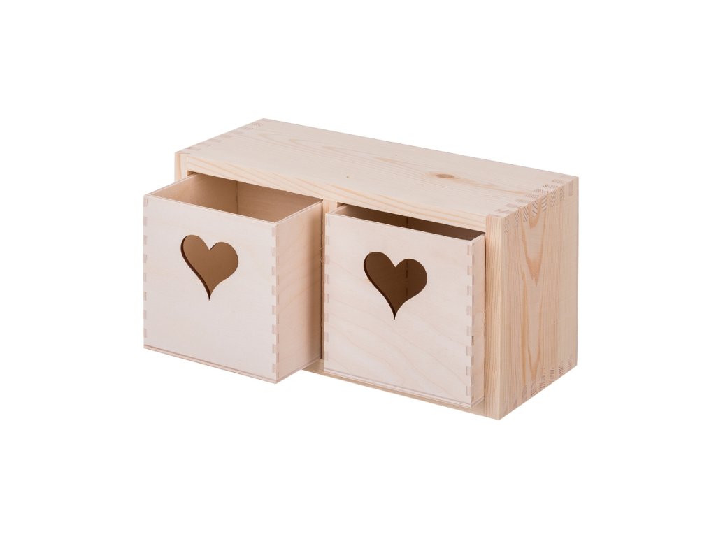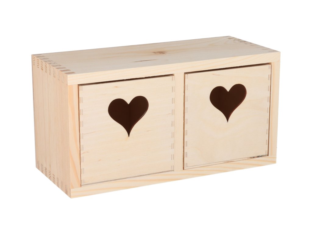 Drveni ormarić sa 2 pretinca od mirisne borovine. Laserski izrezano ukrasno srce.