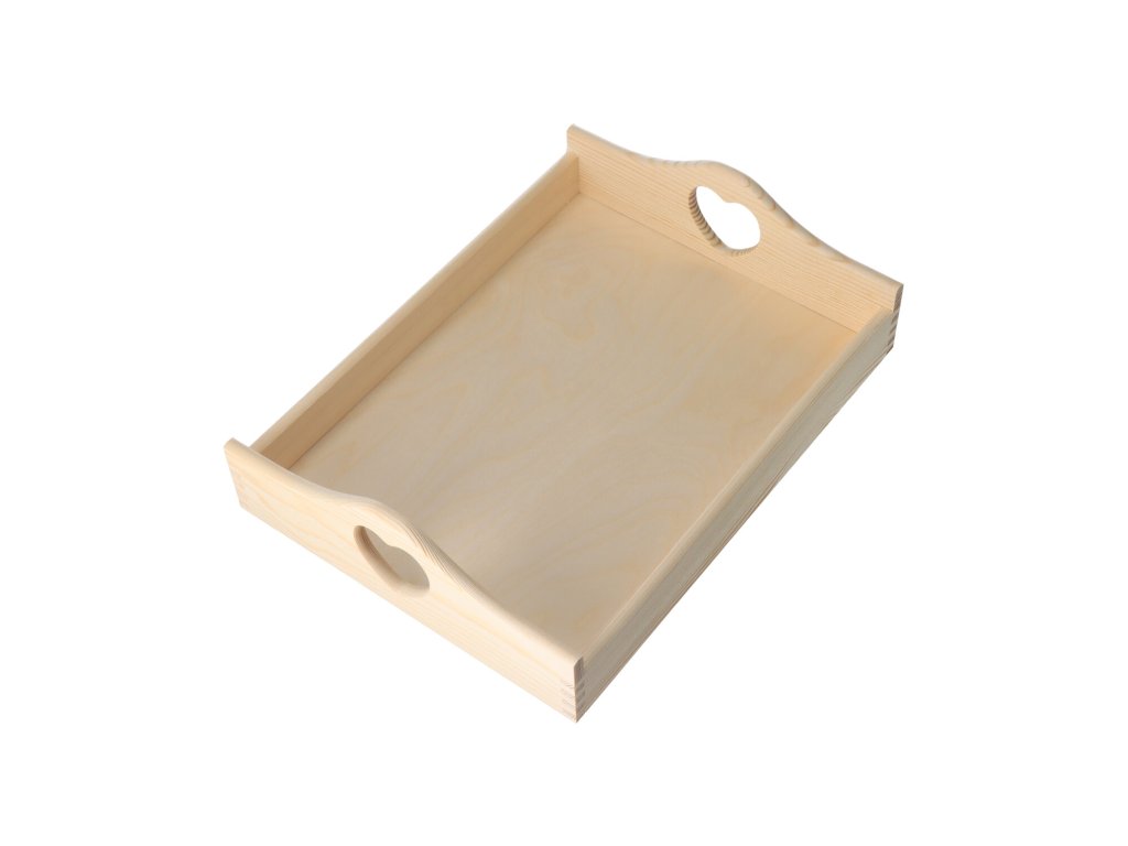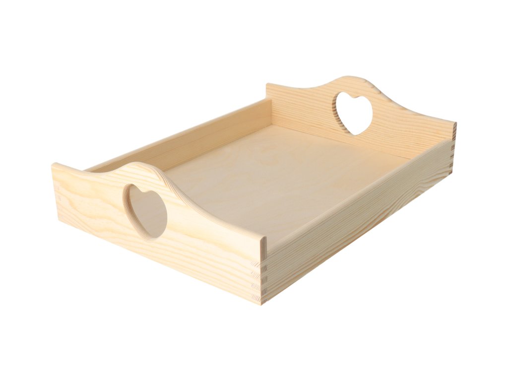 Pladanj za posluživanje izrađen od visokokvalitetne borove građe. Idealno za posluživanje više stvari odjednom. Ručke u obliku zgodnih srca.