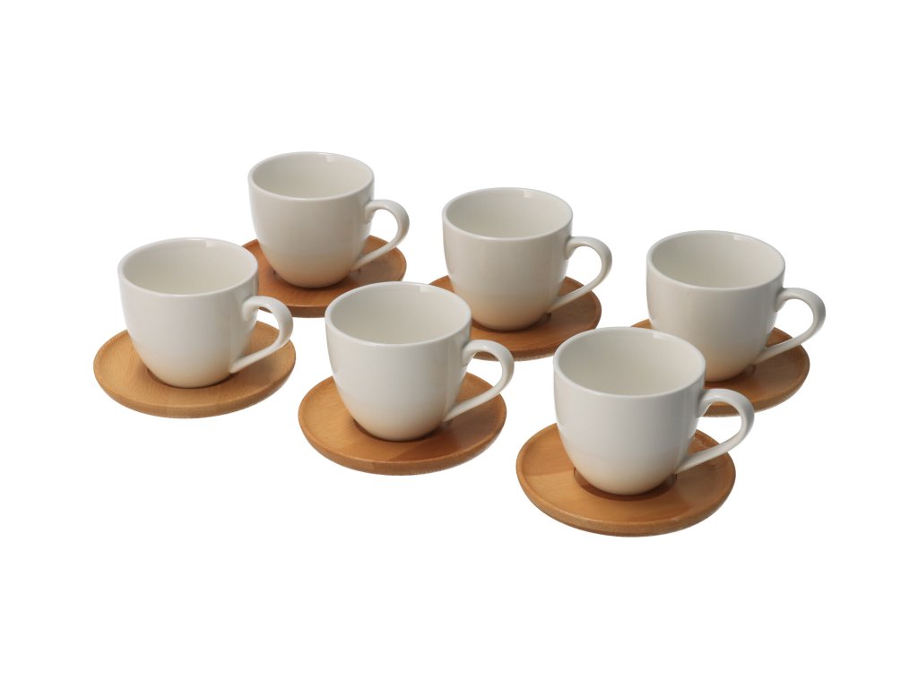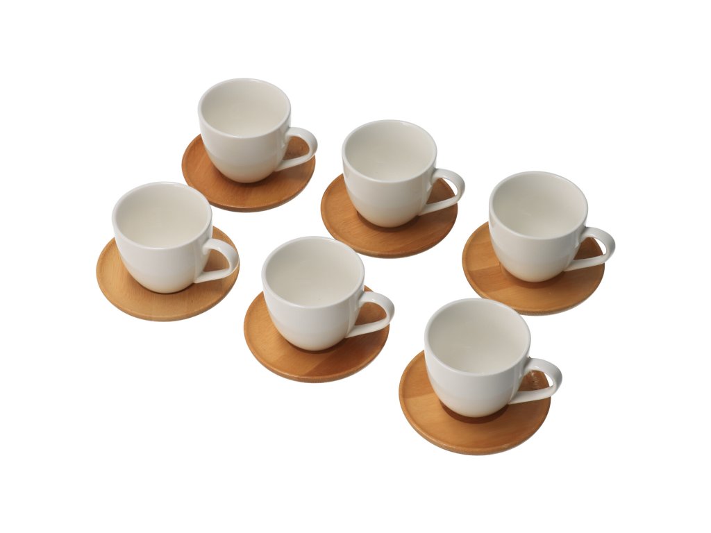 Drveni podmetač s porculanskom šalicom 6 kom.