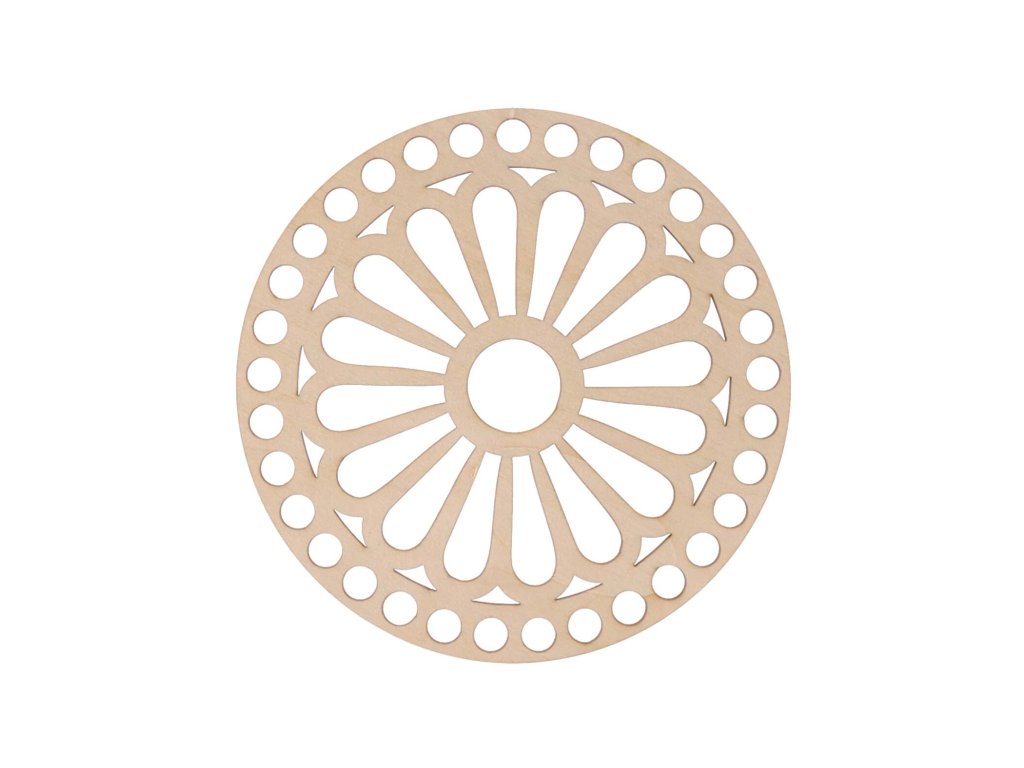 Drveni poklopac za košaru s izrezbarenim motivom cvijeta tratinčice izrađujemo od brezove šperploče debljine 3 mm. Pogodan je za izradu heklanih košara i organizatora od konca. Na raspolaganju imamo nekoliko veličina .