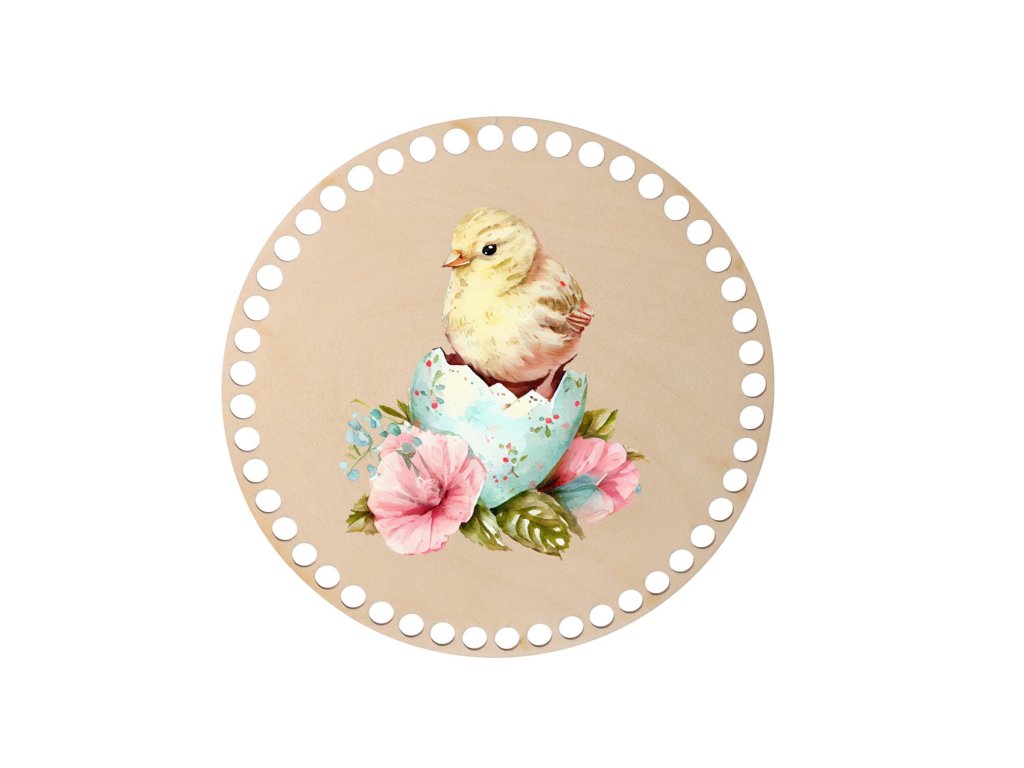 Okrugli poklopac za košaru sa šarenim uskršnjim motivom izrađujemo od brezove šperploče debljine 3 mm. Pogodan je za izradu heklanih košara od konca. Nudimo različite veličine .