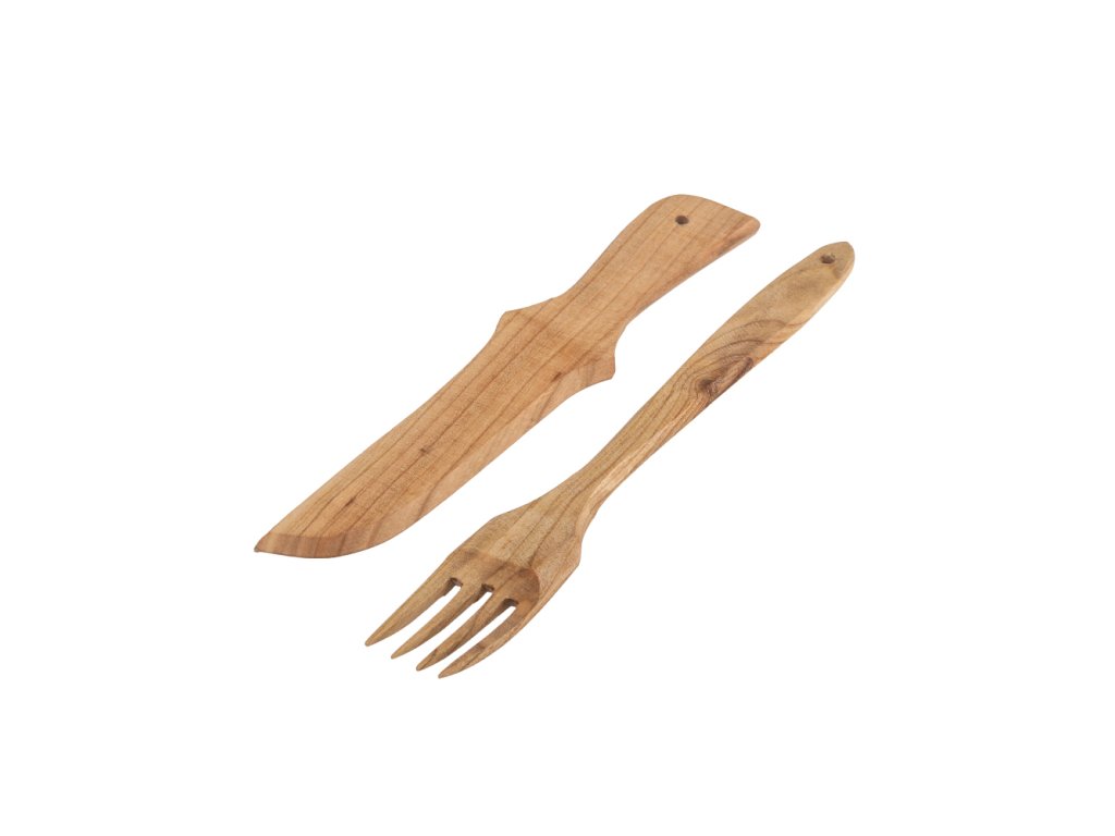 Prekrasan i moderan pribor za jelo od trešnjinog drva savršeno će nadopuniti vašu kolekciju drvenog posuđa i zdjela. Ljubitelji prirodnih materijala i ekologije bit će oduševljeni.