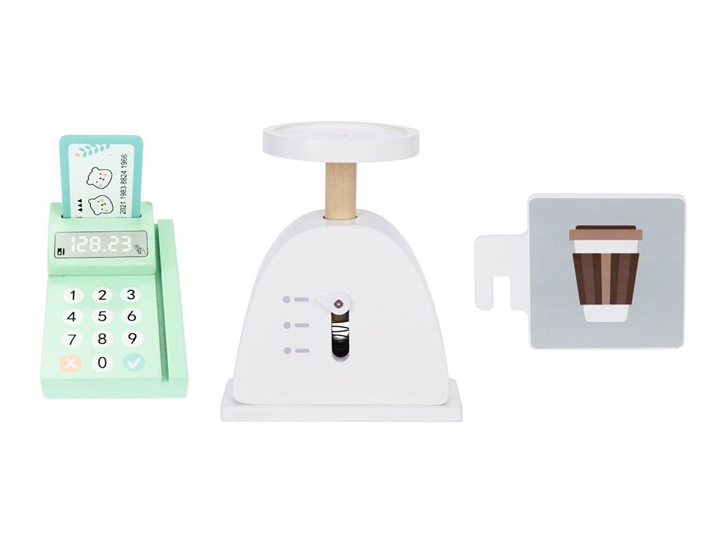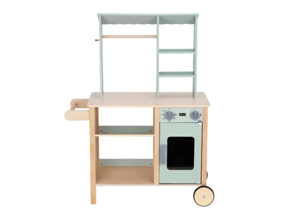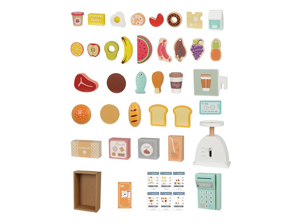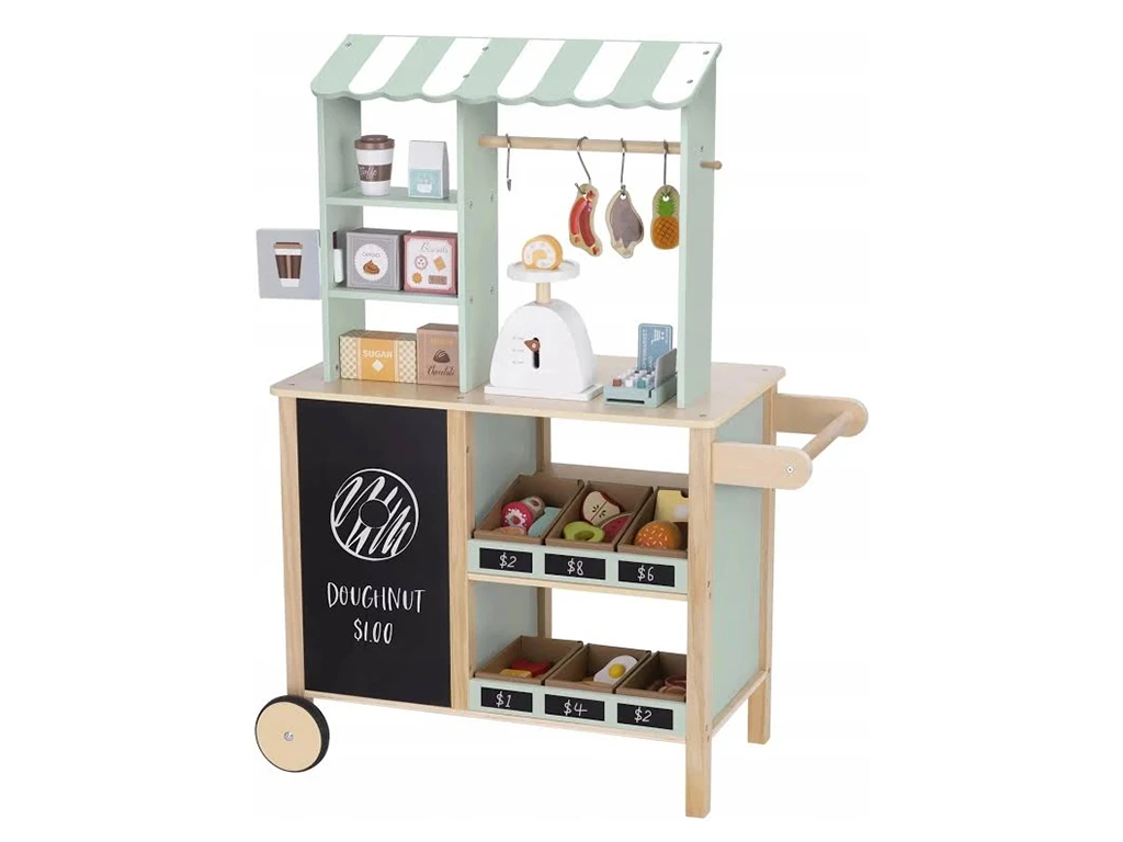 Pretvorite dječju sobu u zabavnu malu trgovinu. Ovaj drveni štand omogućuje djeci da isprobaju uloge prodavača i kupca te stvore vlastite priče o kupovini. Bilo da prodaju voće, igračke ili izmišljene poslastice, njihova mašta nema granica.