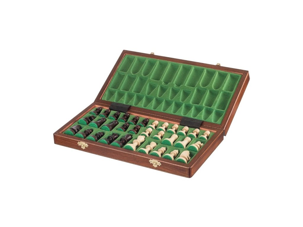 Detaljno izrađen drveni šah s igraćom površinom od 35 x 35 cm oduševit će svakog ljubitelja ove klasične igre. Zbog činjenice da su figurice izrezbarene ručno, svaki je komad original.