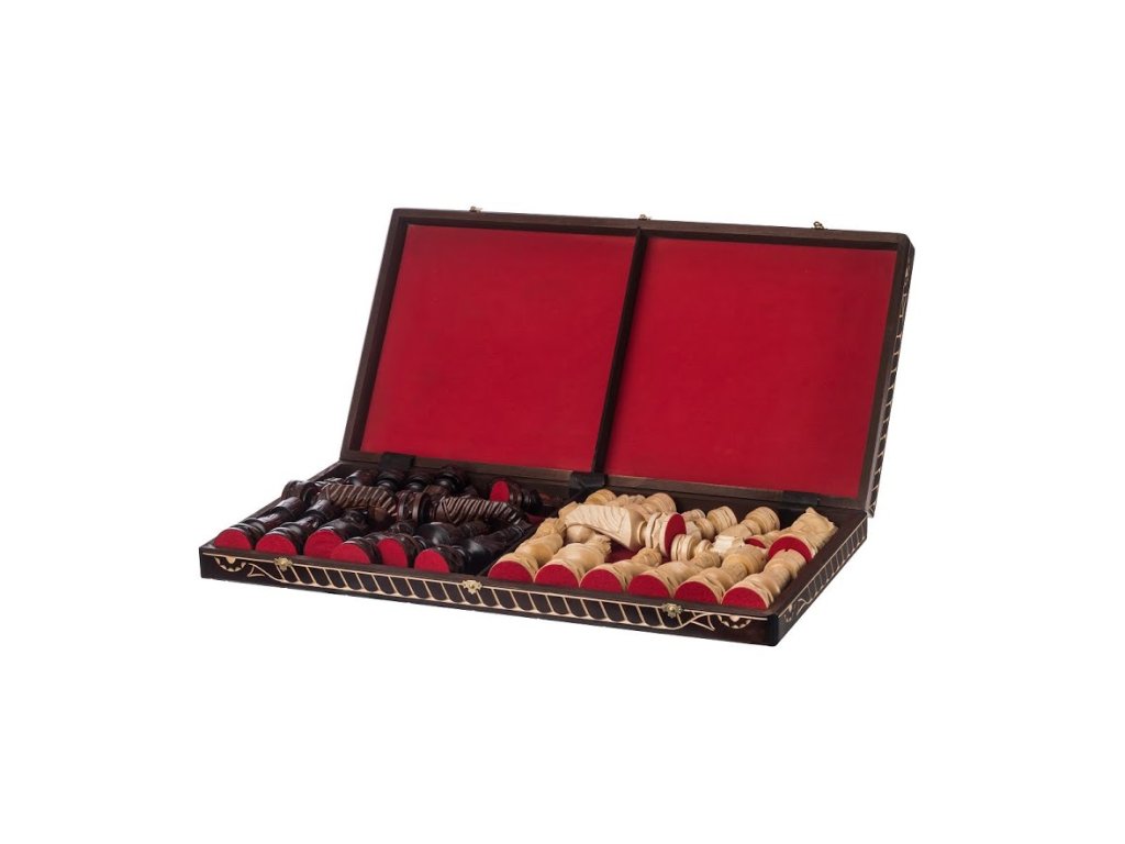 Detaljno izrađen drveni šah s prostranom igraćom površinom. Figurice su rezultat poštenog ručnog rada, što cijelom setu daje dašak originalnosti.