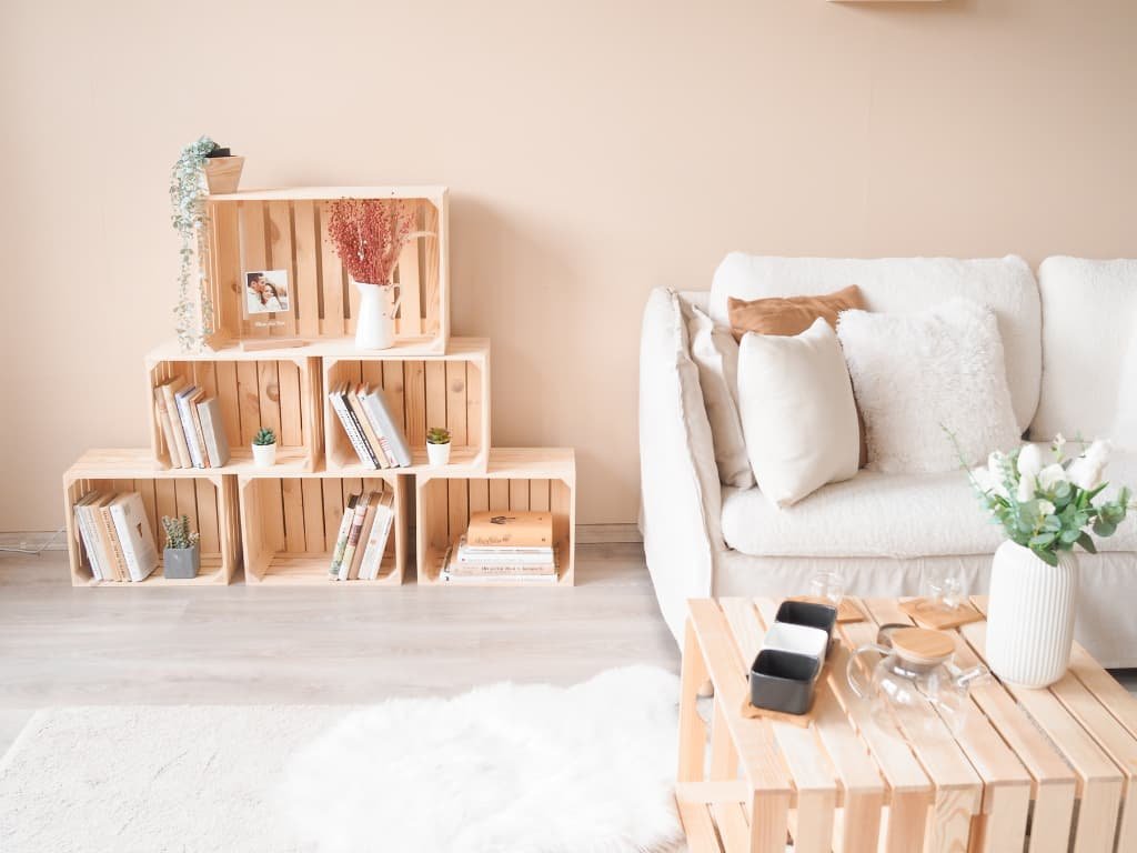 Svjež i prirodan, ovo je namještaj izrađen od drvenih sanduka. Stjenka od drvenih sanduka je dimenzija 140x90x24 cm.