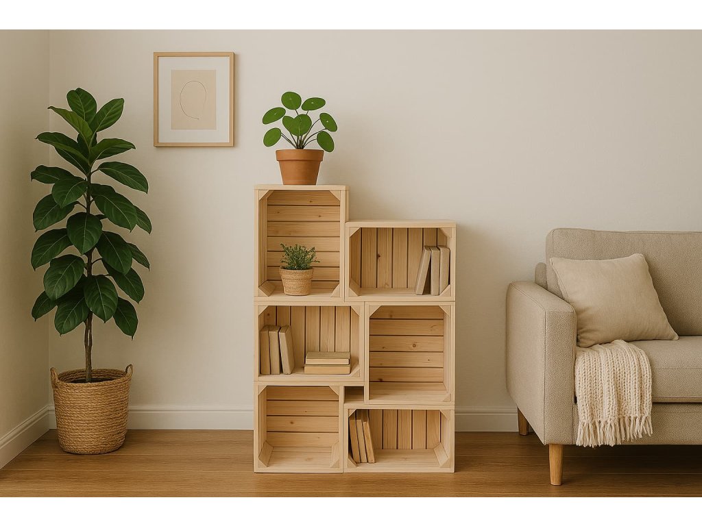Kutije šaljemo zasebno, a pomoću spojnog materijala (vijci ili traka) možete izraditi vlastiti sklop knjižnice. Tako u svakom trenutku možete promijeniti oblik i oblik knjižnice prema trenutnom raspoloženju i prostornim mogućnostima.