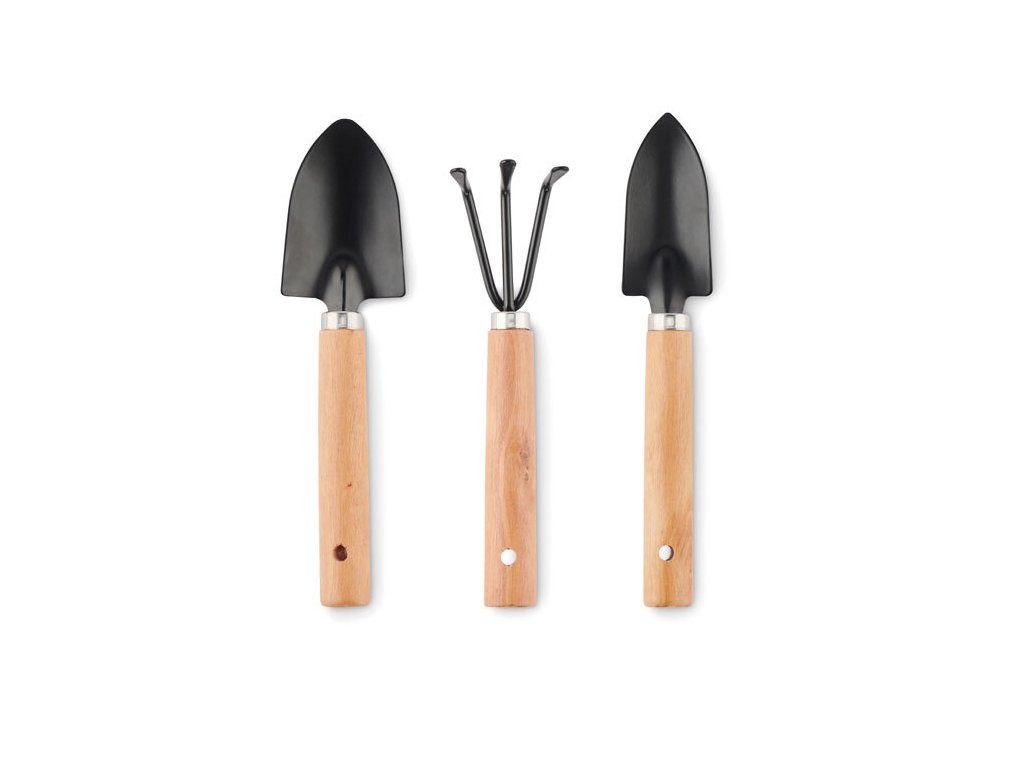 Set drvenog alata u praktičnom pakiranju nezamjenjiv je pomagač pri radu u vrtu i na balkonu. Izdržljiv je i lagan, drvene drške savršeno pristaju u ruku i povećavaju udobnost.