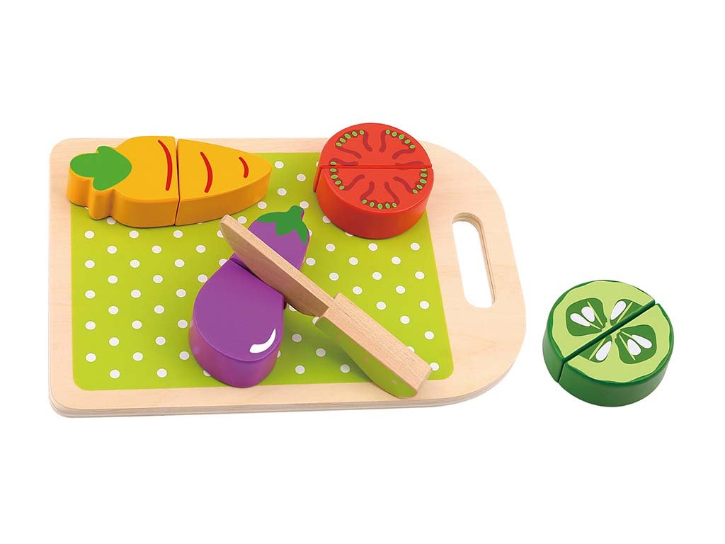 Drveni set za rezanje povrća s čičkom razvija dječju koordinaciju, finu motoriku i maštu. Također je odličan dodatak dječjim drvenim kuhinjama.