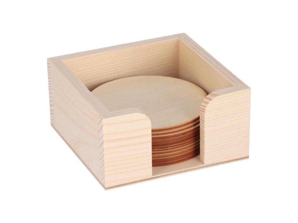 Drveni spremnik s okruglim podmetačima 10 kom.