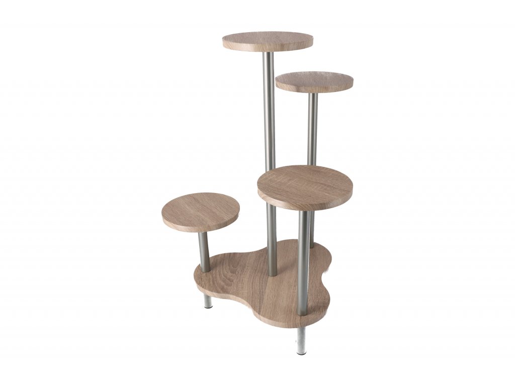 Metalna konstrukcija je izrađena od aluminija, što stalak čini čvrstim i stabilnim. Police su izrađene od FSC certificiranih MDF ploča, na površini je folija u imitaciji drva (dekor hrast). U pojedinačne baze mogu stati 4 posude za cvijeće maksimalnog promjera 20 cm, nosivost jedne police je cca 5 kg.