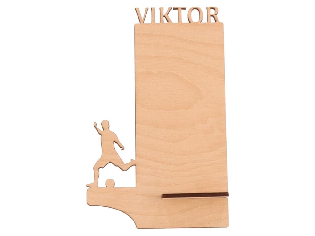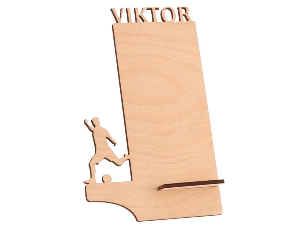Čuvajte svoj mobilni telefon sa stilom. Drveni stalak s vlastitim sportskim motivom i nazivom prikladan je za dom i ured. Također će napraviti dar kao dar.