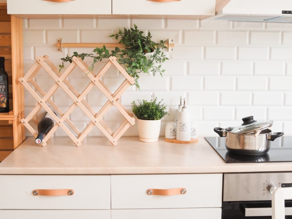 Drveni stalak za nekoliko boca vina, koji se ističe svojim prozračnim dizajnom i dobrom stabilnošću.