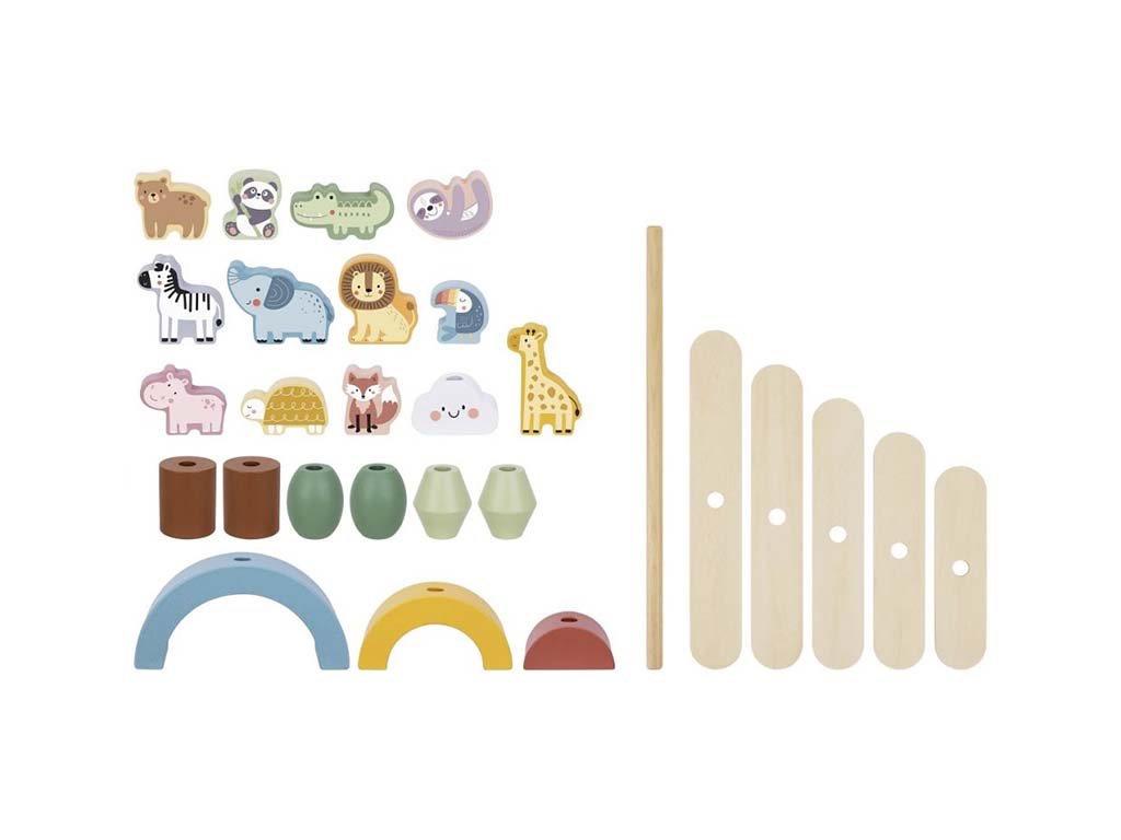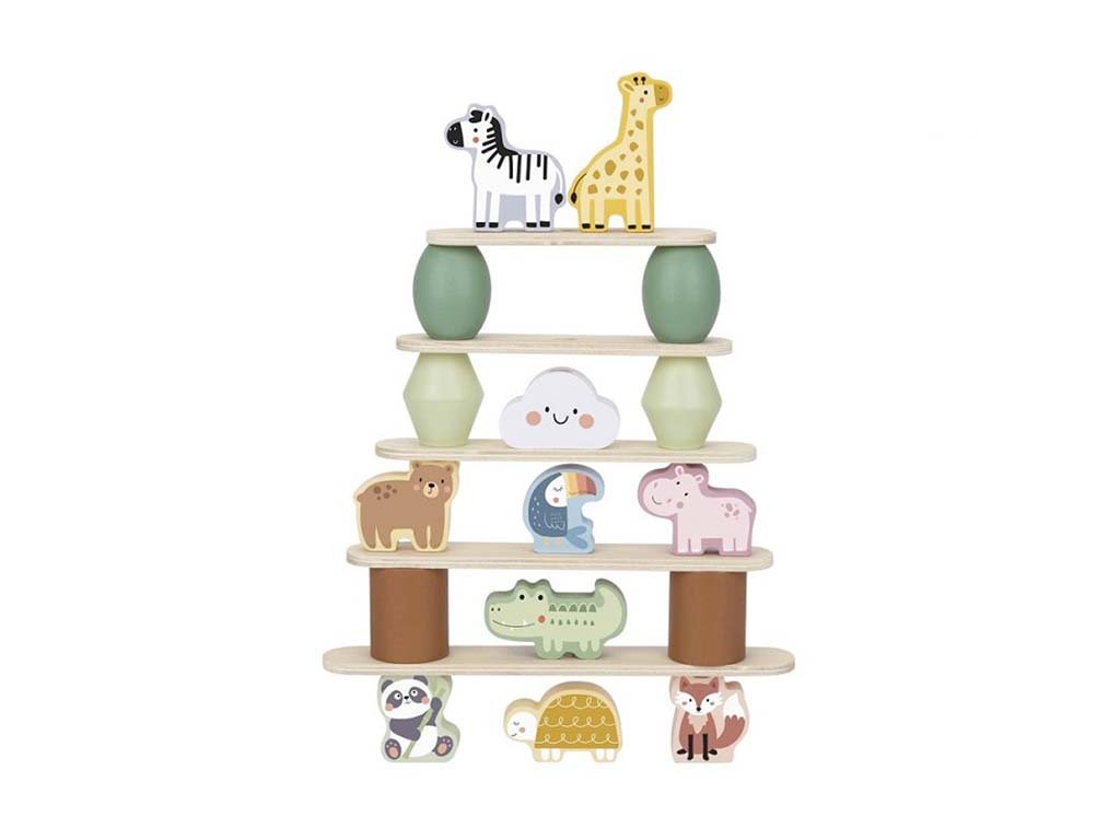Toranj za ravnotežu životinja je zabavna i edukativna igračka koja djecu uči strpljenju, koncentraciji i finoj motorici. Zadatak je sastaviti šarene drvene pločice u toranj i postupno postavljati šarene životinje na njih bez da se cijela konstrukcija sruši. Lav, panda, žirafa, kornjača, lisica i ostali životinjski prijatelji vježbat će ne samo dječju spretnost, već i njihovu maštu prilikom izmišljanja vlastitih priča.