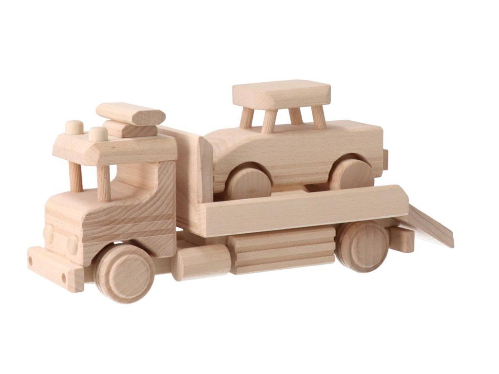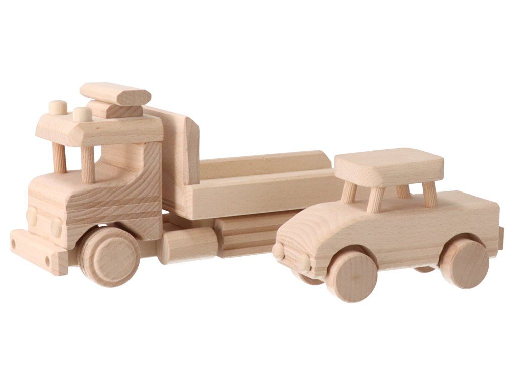Prirodni drveni traktor s autićem idealan je poklon za sve male automobiliste. Kvalitetna obrada bukovog drva jamči dug vijek trajanja i lijep izgled igračke.
