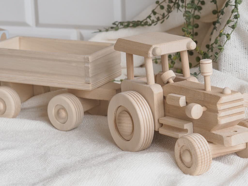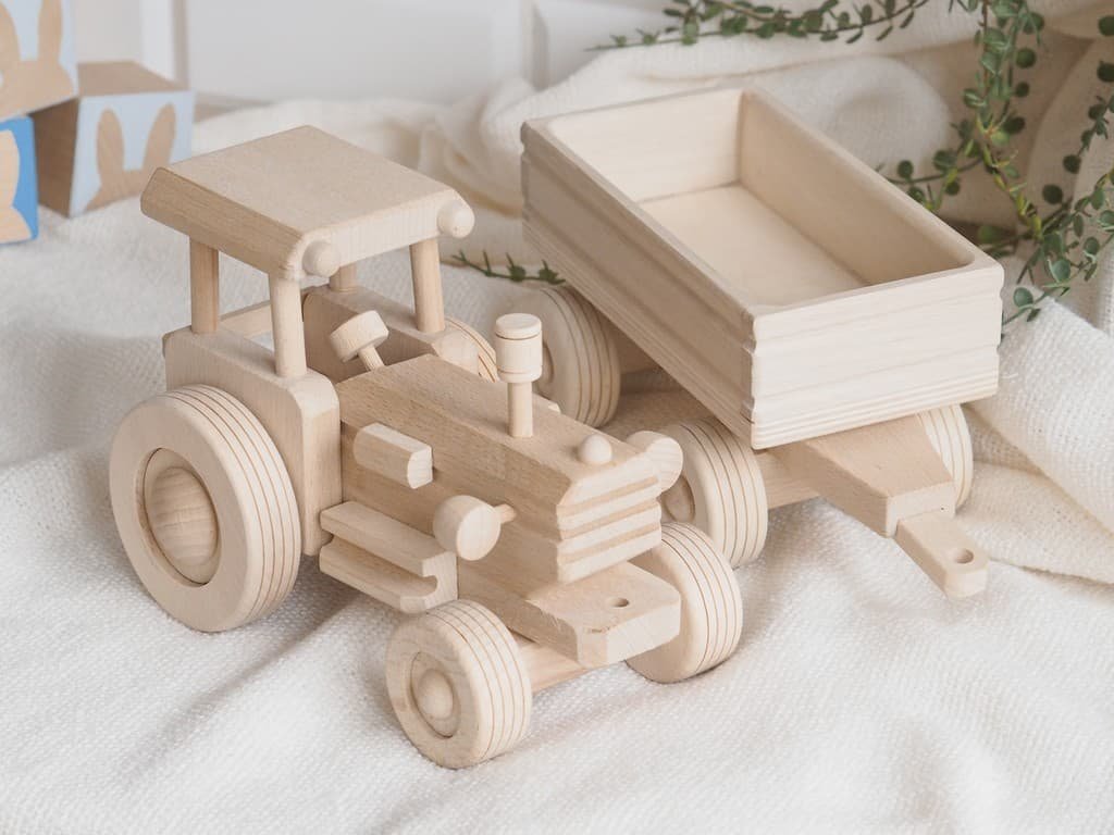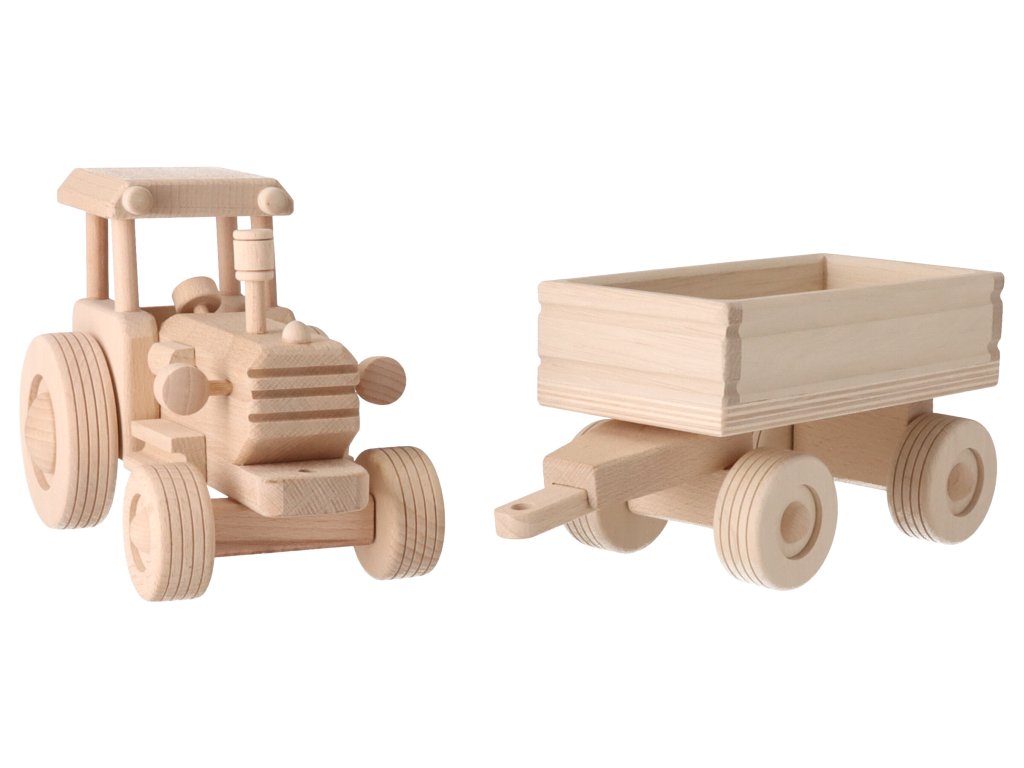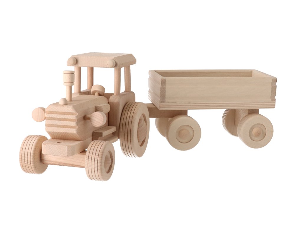 Model traktora koji se kreće s oblogom od prirodnog bukovog drveta odličan je poklon za dječake. Visokokvalitetan dizajn jamči dug vijek trajanja i lijep izgled drvene igračke.