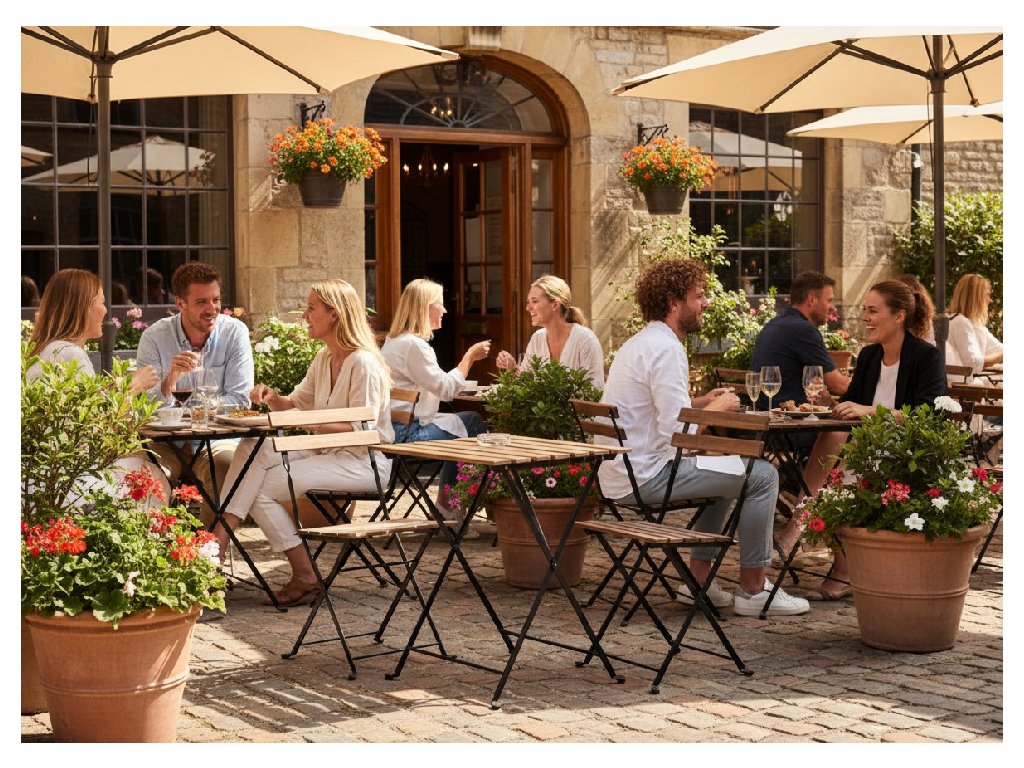 Kombinacija čvrste metalne konstrukcije i prirodnog drva osigurava visoku stabilnost, dugotrajnost i otpornost na vanjske uvjete. Drveni vrtni namještaj cijenjen je zbog svoje prirodne otpornosti na vlagu i vremenske uvjete, a istovremeno izgleda vrlo elegantno i s vremenom dobiva prekrasnu patinu. Metalni elementi daju setu moderan izgled i čvrstoću.