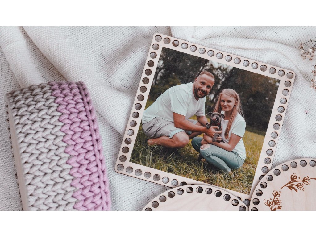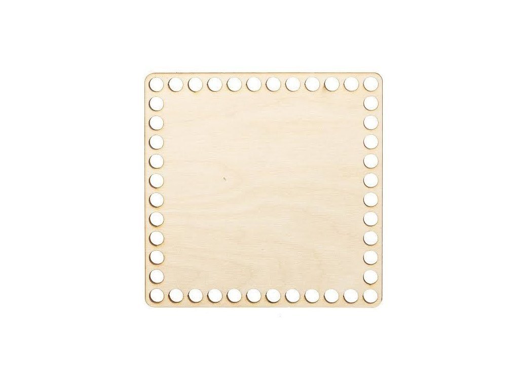 Nudimo četvrtastu drvenu podlogu za košaru od brezove šperploče debljine 3 mm s rupama promjera 9 mm u nekoliko veličina . Pogodan je za izradu heklanih košara od konca i niti.