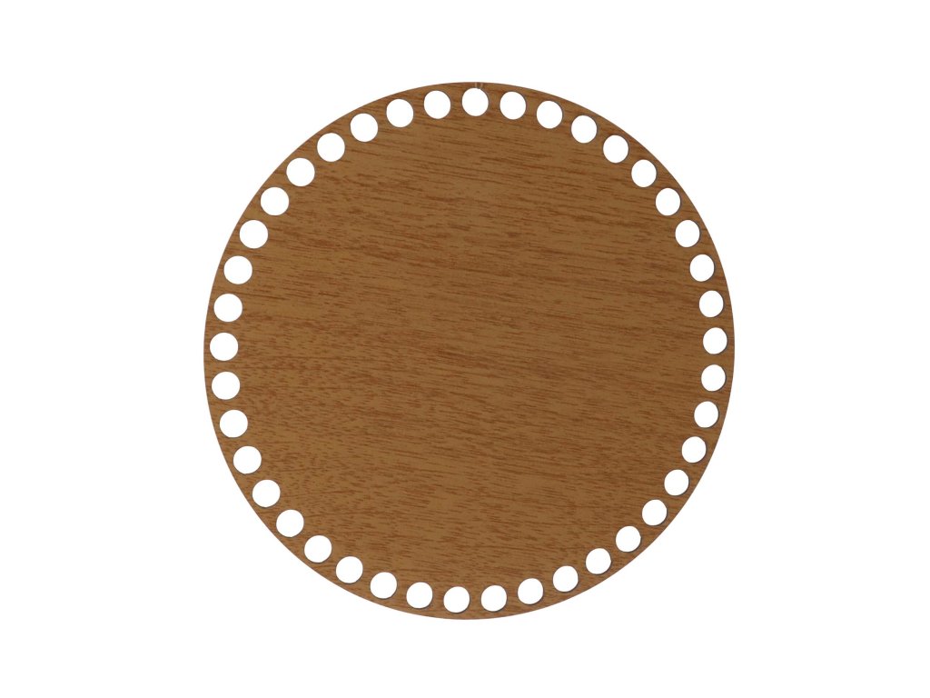 U ponudi imamo okruglo postolje za košaru s drvenim dekorom hrasta zlatne boje, debljine 3 mm s rupama promjera 9 mm, u raznim veličinama . Pogodan je za izradu heklanih košara od konca i niti.