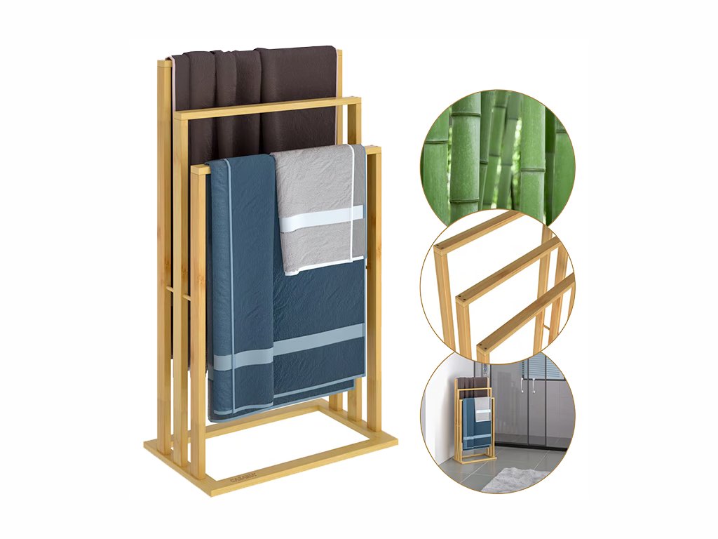 Praktični samostojeći držač za ručnike opremljen je trima šipkama raspoređenima u obliku stepenica, što osigurava optimalnu cirkulaciju zraka i brzo sušenje ručnika bez neugodnog mirisa.