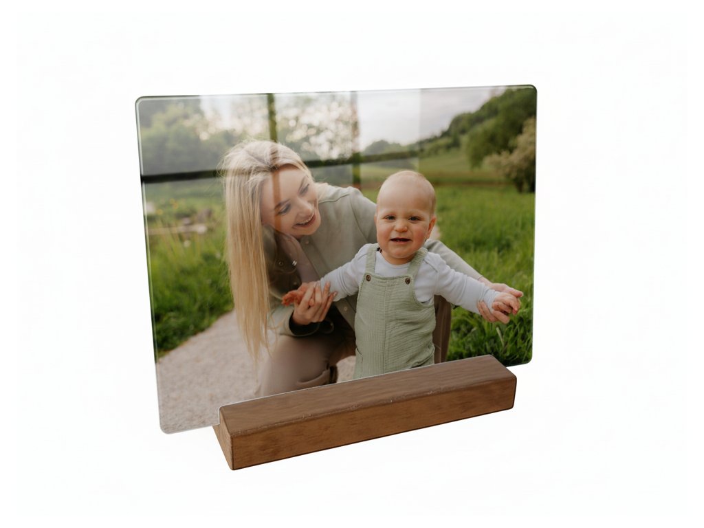 Fotografija u boji na akrilnom staklu dat će vašim uspomenama luksuzan izgled koji neće izblijedjeti. Zahvaljujući tisku na visokokvalitetnom UV printeru, boje, kontrast i fini detalji posebno dolaze do izražaja. Fotografiju ćemo dostaviti zajedno s masivnim drvenim stalkom!