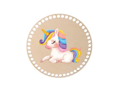 Okrugli drveni poklopac za košaru s motivom jednoroga izrađujemo od brezove šperploče debljine 3 mm. Pogodan je za izradu heklanih košara od konca. Nudimo različite veličine .