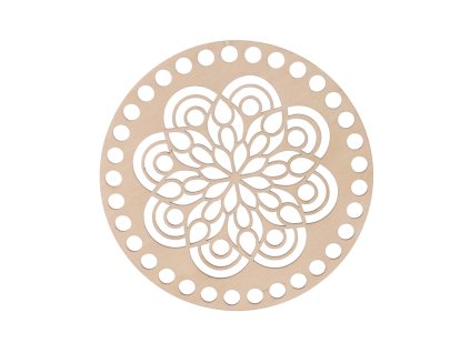 Drveni poklopac za košaru s izrezbarenim motivom cvijeta tratinčice izrađujemo od brezove šperploče debljine 3 mm. Pogodan je za izradu heklanih košara i organizatora od konca....