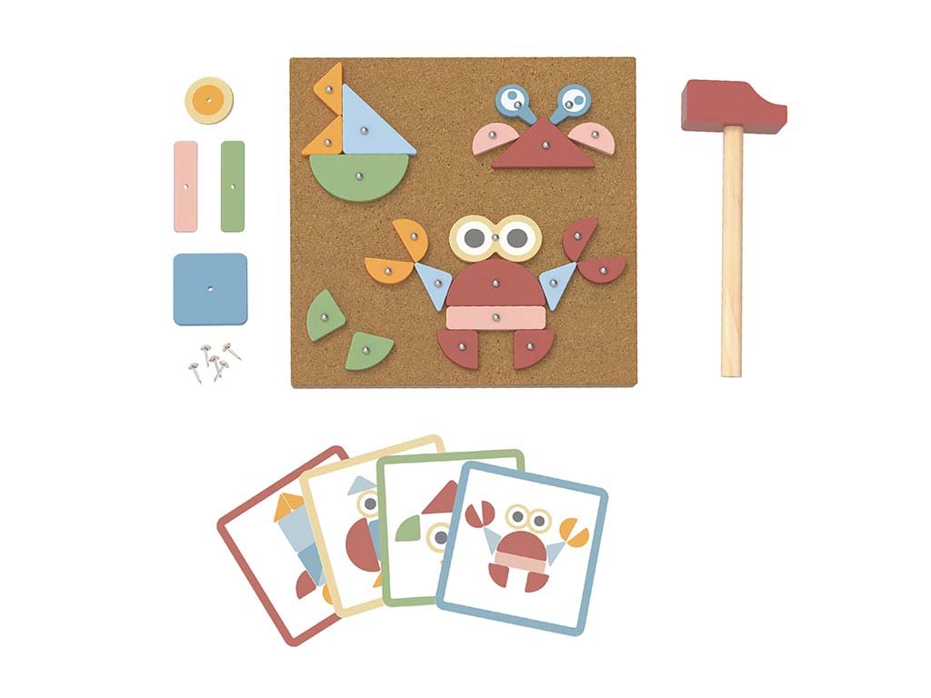 Razvijajte vještine svoje djece na zabavan način! Ploča od pluta s drvenim dijelovima nudi beskrajne mogućnosti za sastavljanje slika, a istovremeno poboljšava finu motoriku i dječju maštu.