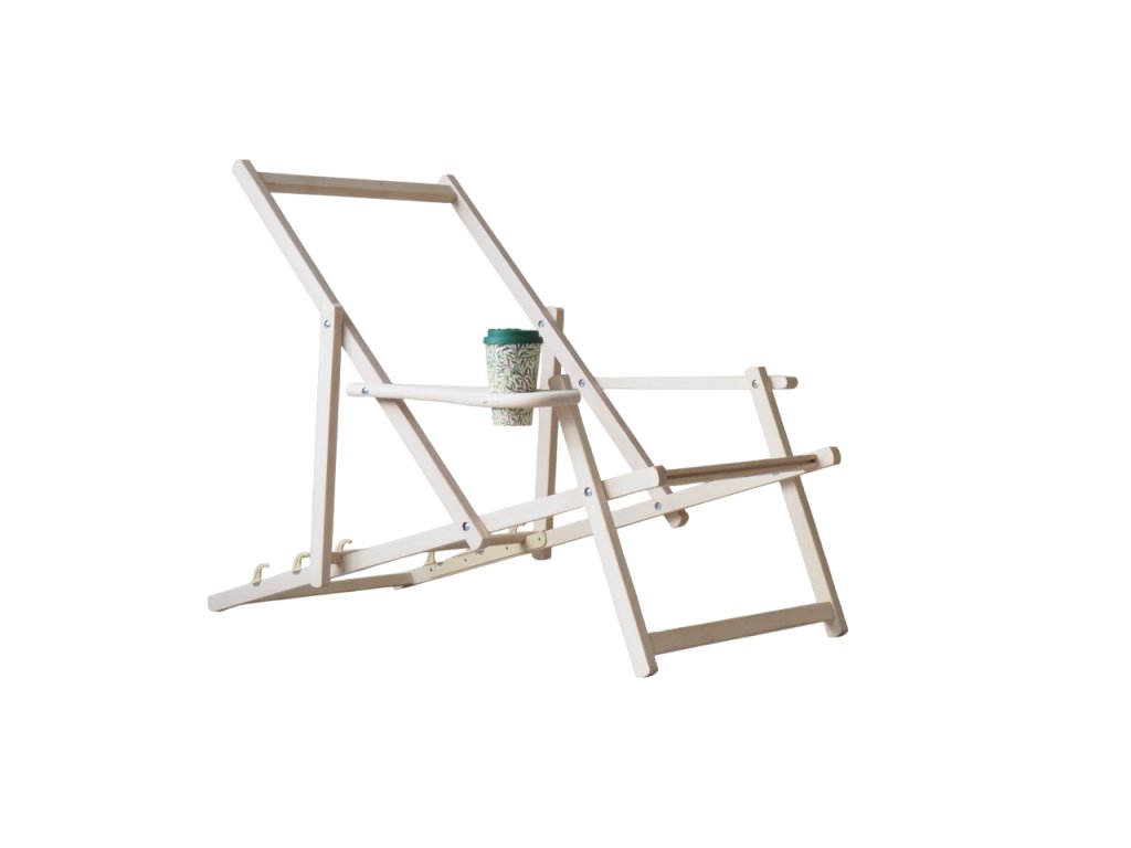 Drvena ležaljka za ležanje izrađena je od visokokvalitetnog bukovog drva. To je čini čvrstom, izdržljivom i stabilnom. Udobni nasloni za ruke osiguravaju udobno sjedenje s potporom za laktove, a praktična rupa promjera 7 cm služi kao držač za vaše piće. Šalica na fotografiji nije uključena.