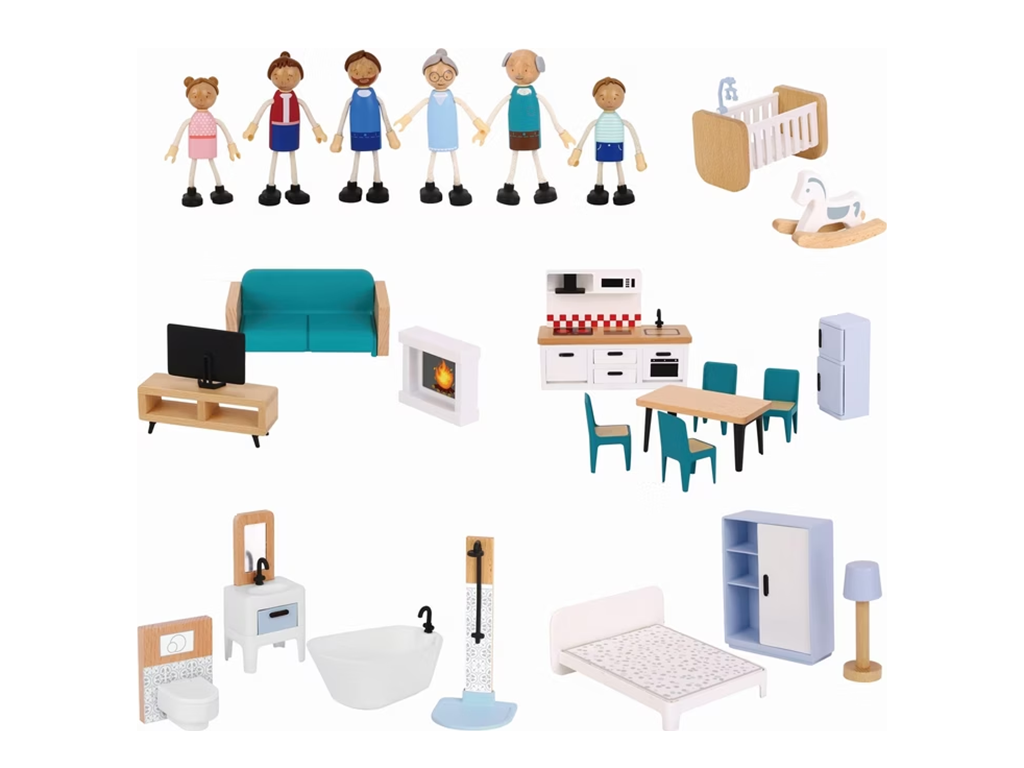 Kuća je opremljena raznim sobama koje nalikuju pravom domu - tu su dnevni boravak, kuhinja, kupaonica i spavaća soba. Uključuje i figure i namještaj, zahvaljujući kojima djeca mogu odmah početi stvarati vlastite priče i situacije. Igra potiče maštu, kreativnost i razvija društvene vještine kroz zajedničku igru.