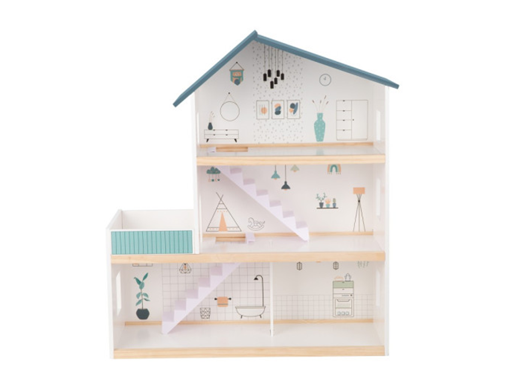 Stvorite svijet priča i avantura sa svojom djecom. Prostrana drvena kućica za lutke nudi nekoliko katova i soba u kojima djeca mogu odigrati svakodnevni obiteljski život i vlastite scenarije iz mašte. Otvoreni dizajn čini kućicu lako dostupnom sa svih strana, tako da se više djece može udobno igrati istovremeno.