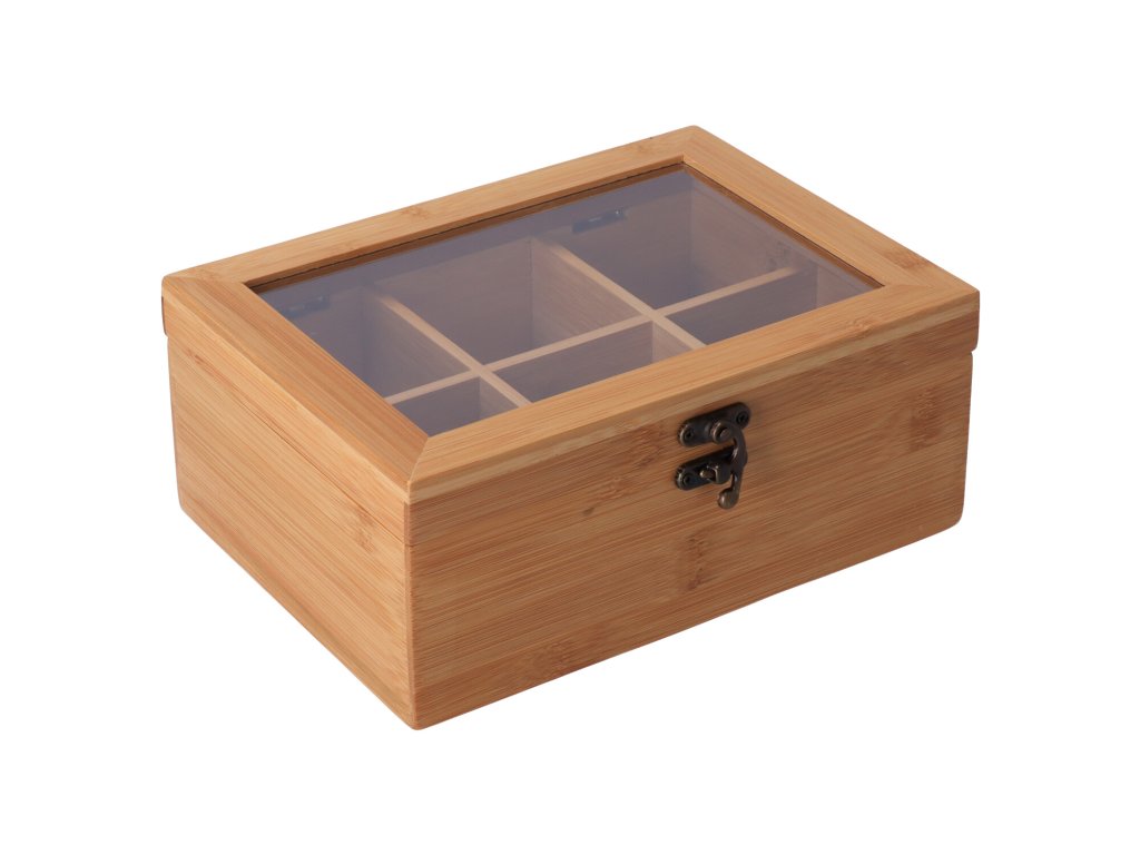 Kutija za čaj od bambusa sa šest pretinaca poslužit će vam za spremanje vrećica čaja. Zahvaljujući plastičnom poklopcu, čaj dugo zadržava svoju ukusnu aromu.
