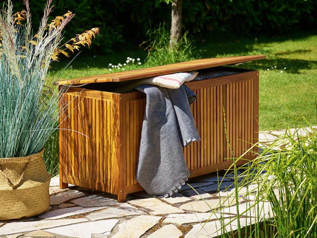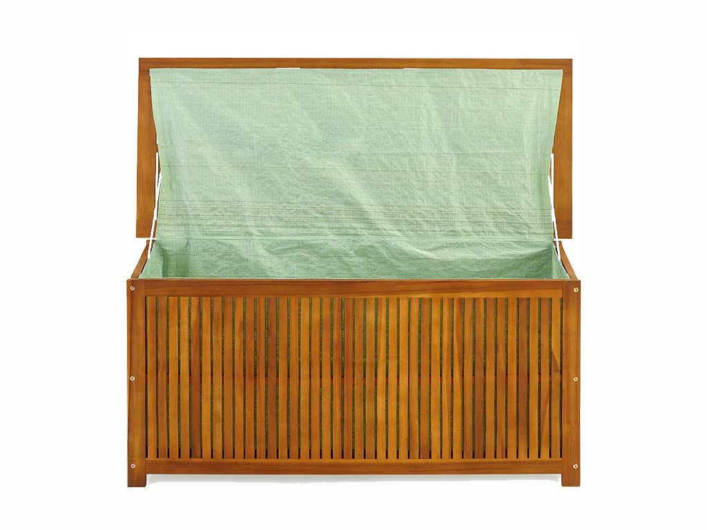 Ova prostrana vrtna kutija za pohranu, izrađena od masivnog bagremovog drva, idealno je rješenje za pohranu jastuka za sjedenje, navlaka za vrtni namještaj, alata ili dječjih igračaka. Zahvaljujući praktičnom dizajnu, pomaže u održavanju čistoće i urednosti vašeg vrta, terase ili balkona.