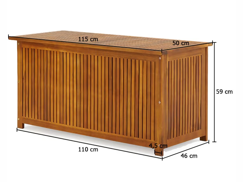 Ova vrtna kutija za pohranu, izrađena od masivnog bagremovog drva, idealno je rješenje za pohranu jastuka za sjedenje, navlaka za vrtni namještaj, alata ili dječjih igračaka. Zahvaljujući praktičnom dizajnu, pomaže u održavanju čistoće i urednosti vašeg vrta, terase ili balkona.