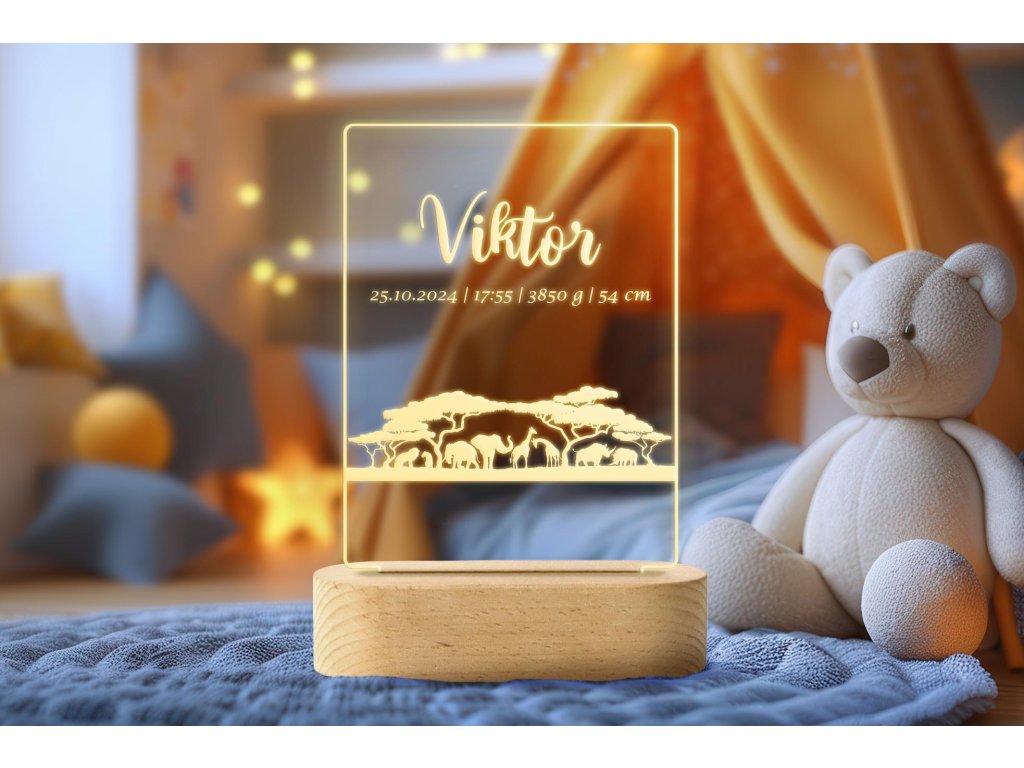 Personalizirana LED svjetiljka s imenom i podacima o rođenju bebe savršen je poklon za nove roditelje, koji će osvijetliti interijer i sačuvati uspomene na važan obiteljski događaj.