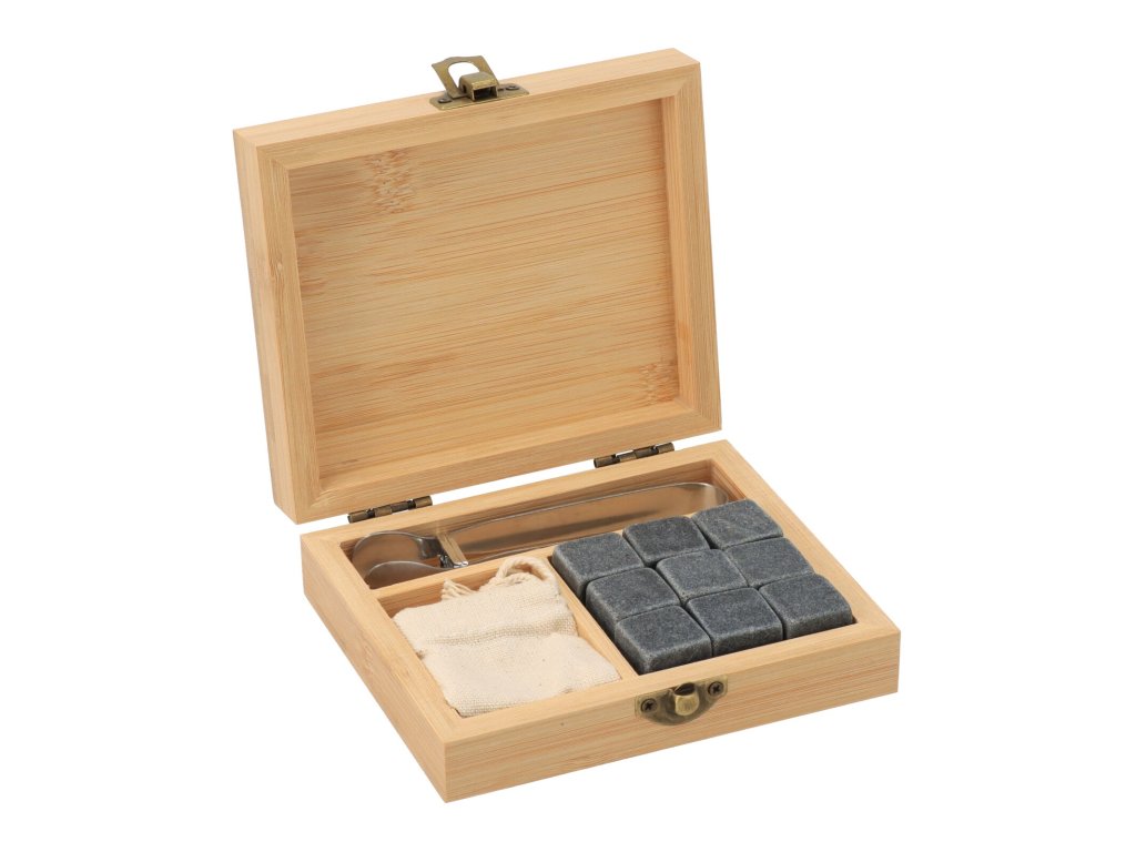 Set uključuje elegantnu kutiju od bambusa, 9 ledenih kamenčića, hvataljke i pamučnu vrećicu.