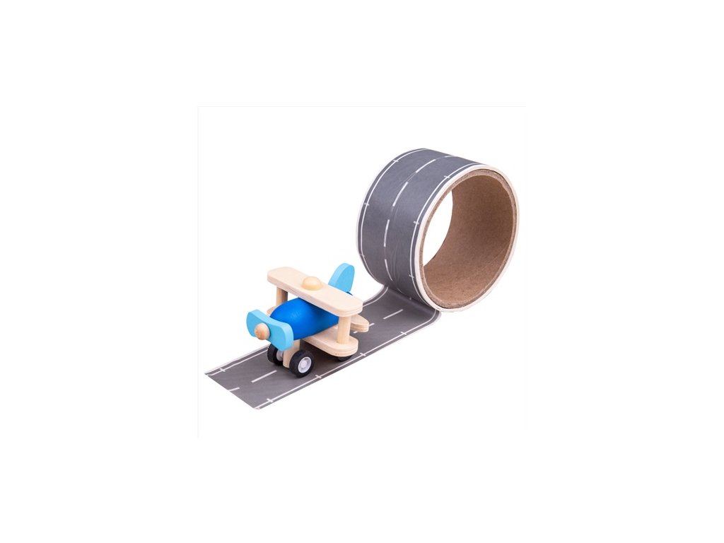 Izradite dječje zračne luke i piste prema njihovim željama. Ljepljiva traka sadrži i drveni avion s kojim mali pustolovi mogu letjeti oko svijeta.
