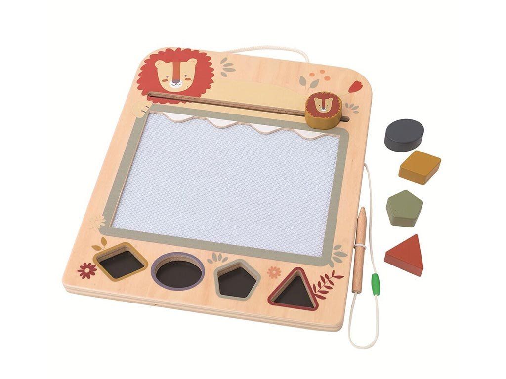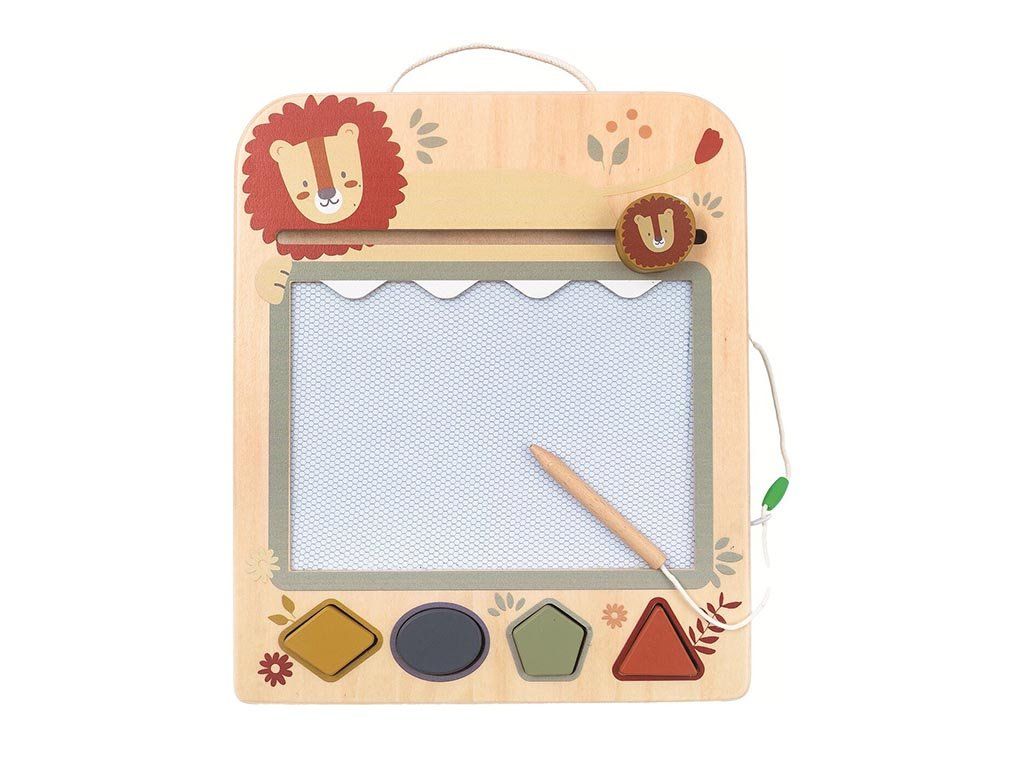 Ploča je izrađena od visokokvalitetnog drva s finim detaljima i razigranim dizajnom životinja. Također uključuje magnetske žigove u raznim oblicima, što djeci omogućuje dodavanje veselih uzoraka na svoje slike.