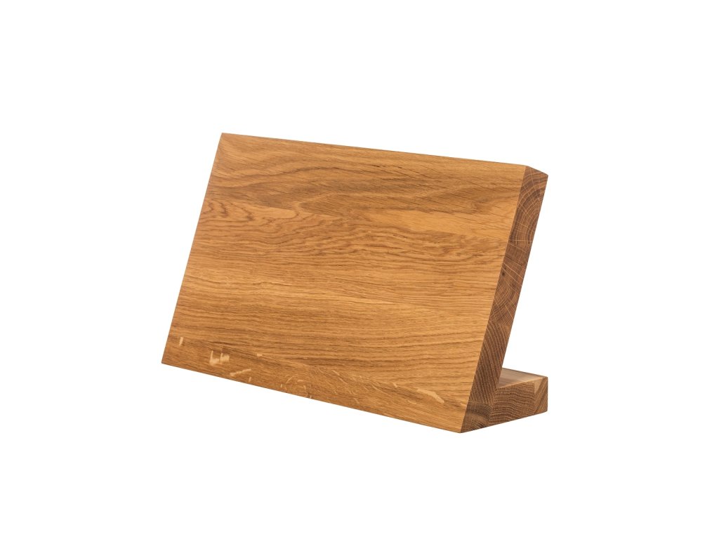 Ovaj čvrsti stalak za noževe izrađen je od hrastovog drva vrhunske kvalitete i ima snažan magnet za pouzdano držanje malih i većih noževa na mjestu. Blokovi rade kao držači na magnetskom principu, gdje se metalni predmeti kao što su noževi, škare ili drugi kuhinjski alati pričvršćuju na njih pomoću magnetskog polja. Ako kod kuće imate noževe od nehrđajućeg čelika, ovaj blok je apsolutno savršen za vas.