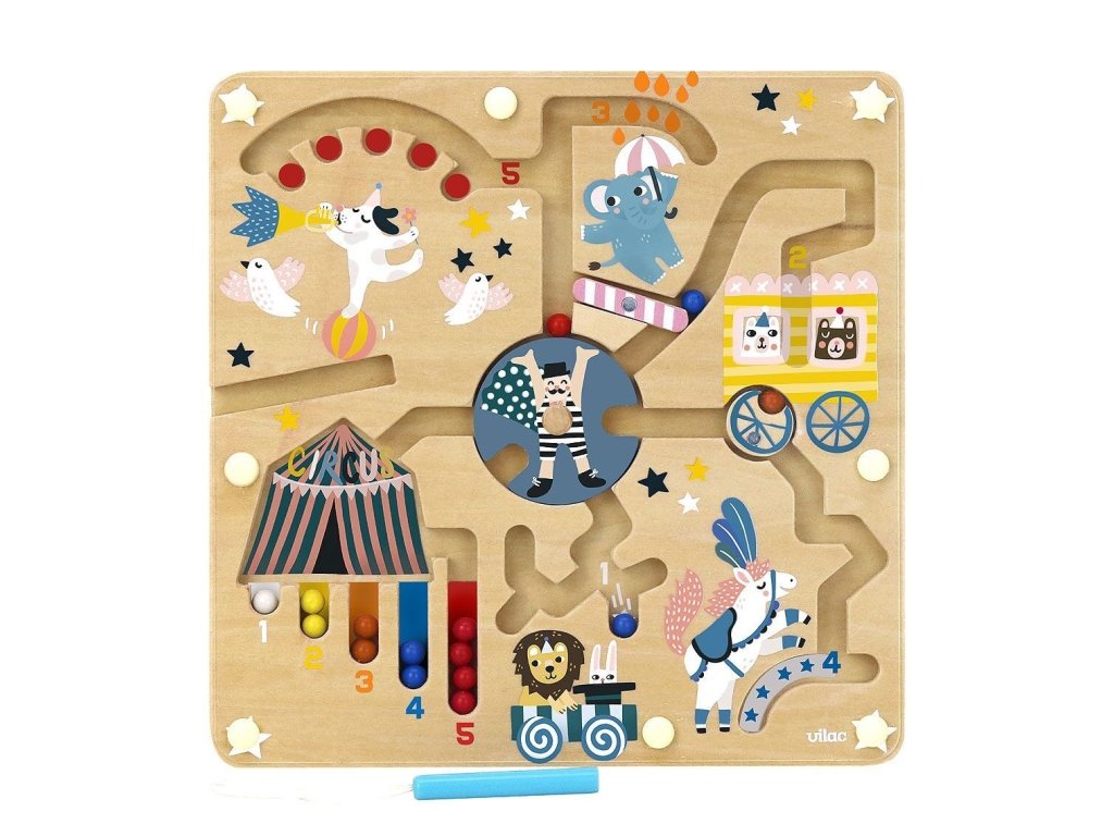 Magnetski labirint s temom cirkusa edukativna je igračka za djecu od 2 godine. Pomoći će im u vježbanju strpljenja, koncentracije i fine motorike.