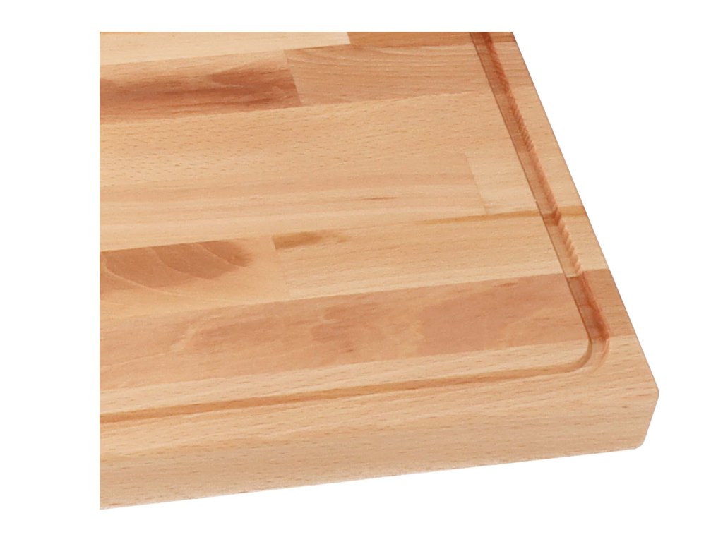 Masivna daska za rezanje dimenzija 52 x 38 x 4 cm prikladna je za rezanje i posluživanje kruha, povrća ili mesa. Izrađena od visokokvalitetne parene bukve s prepoznatljivim drvenim vlaknima.