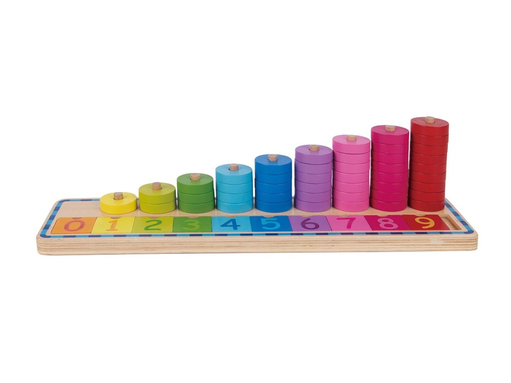 Šarena drvena igra izvrstan je alat za upoznavanje djece s brojevima i brojanjem po prvi put. Zahvaljujući jednostavnom i jasnom dizajnu, podržava prirodni razvoj matematičkih vještina, logičkog razmišljanja i koncentracije. Djeca uče prepoznavati brojeve, dodijeliti im točan broj krugova i istovremeno razlikovati boje.