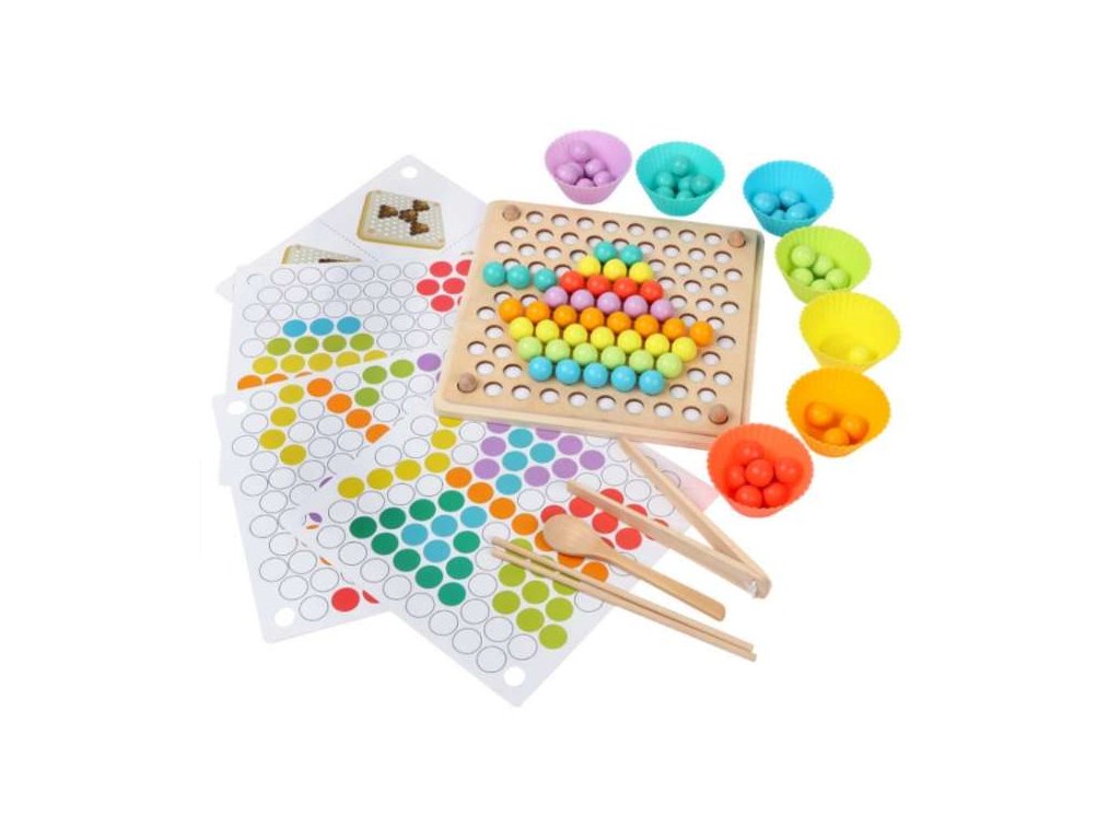Šareni mozaik od loptica savršeno vježba dječju maštu i finu motoriku. Uzorke možete sastavljati prema priloženim karticama, ali vaša mašta naravno nema granica!