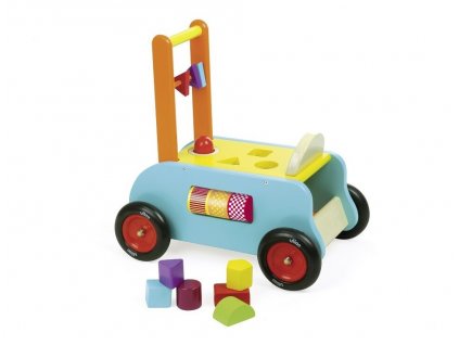 Prekrasna drvena igračka s kojom se djeca mogu zabavljati, a ujedno vježbati motoriku, učiti prepoznavati oblike, boje i početi s jednostavnim brojevima.
