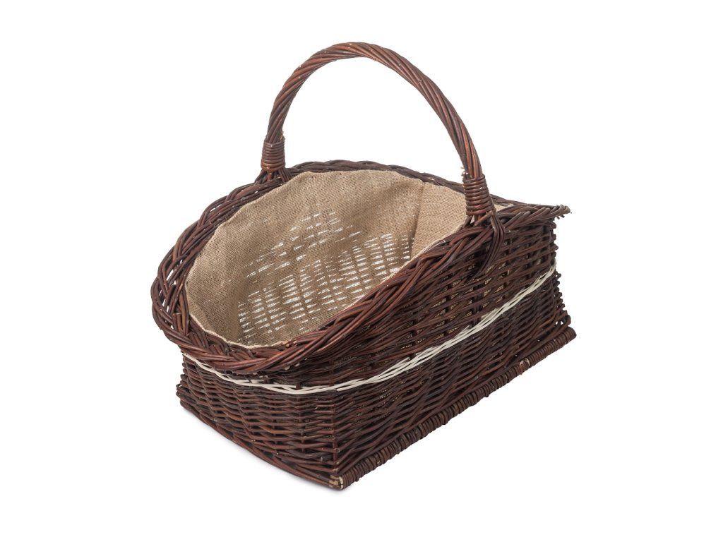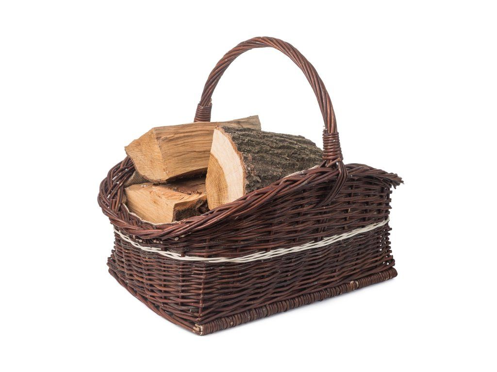 Pletena košara od vrbovog pruća u tamnoj nijansi s ukrasom bit će izvrsna za opskrbu drvima vašeg kućnog kamina, a ujedno će biti originalan i elegantan dodatak.