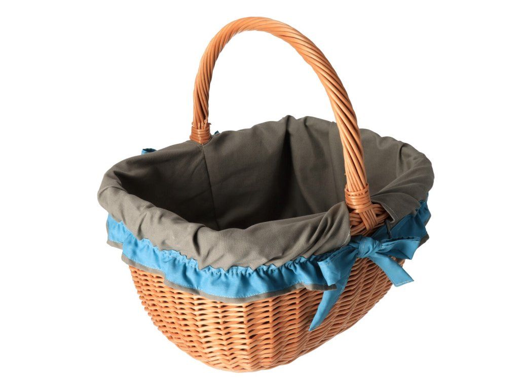 Pletena košara za nabavku s plavozelenom tkaninom