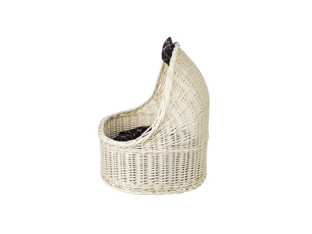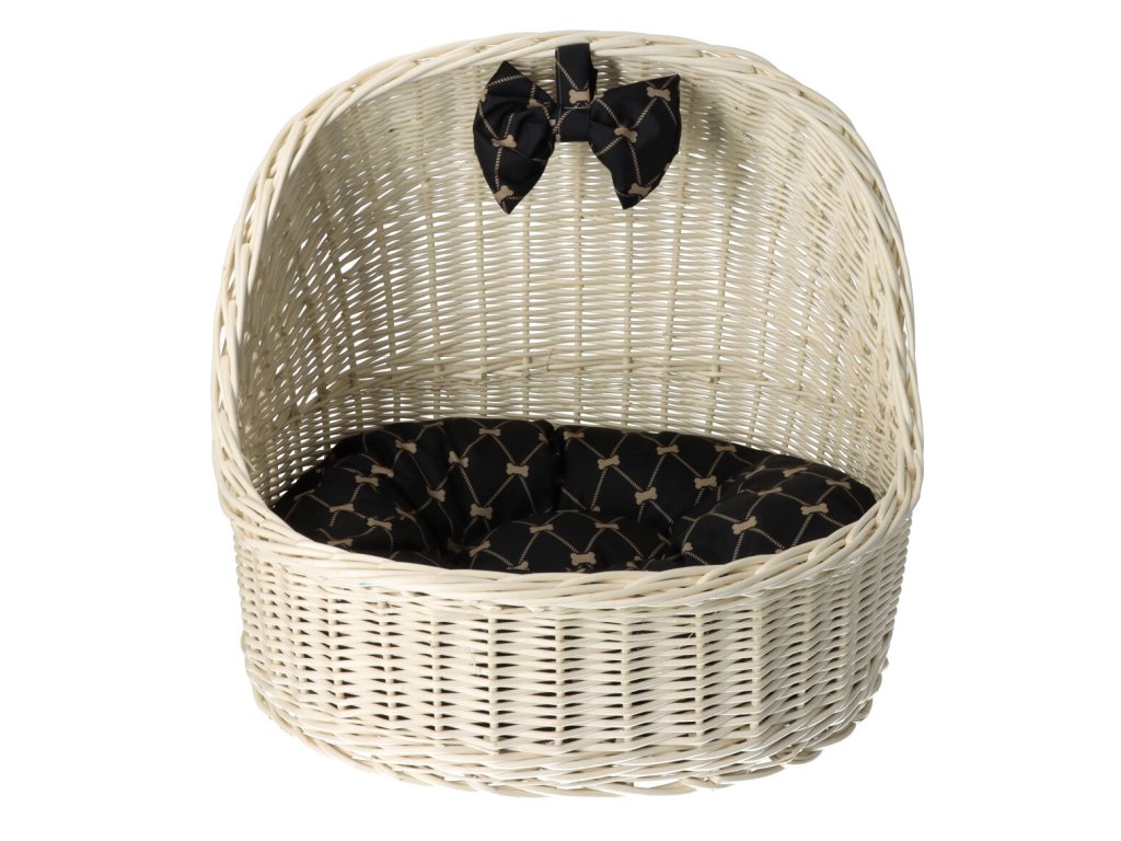 Pleteni krevet za psa s nadstrešnicom - bijeli sa crnom mašnom